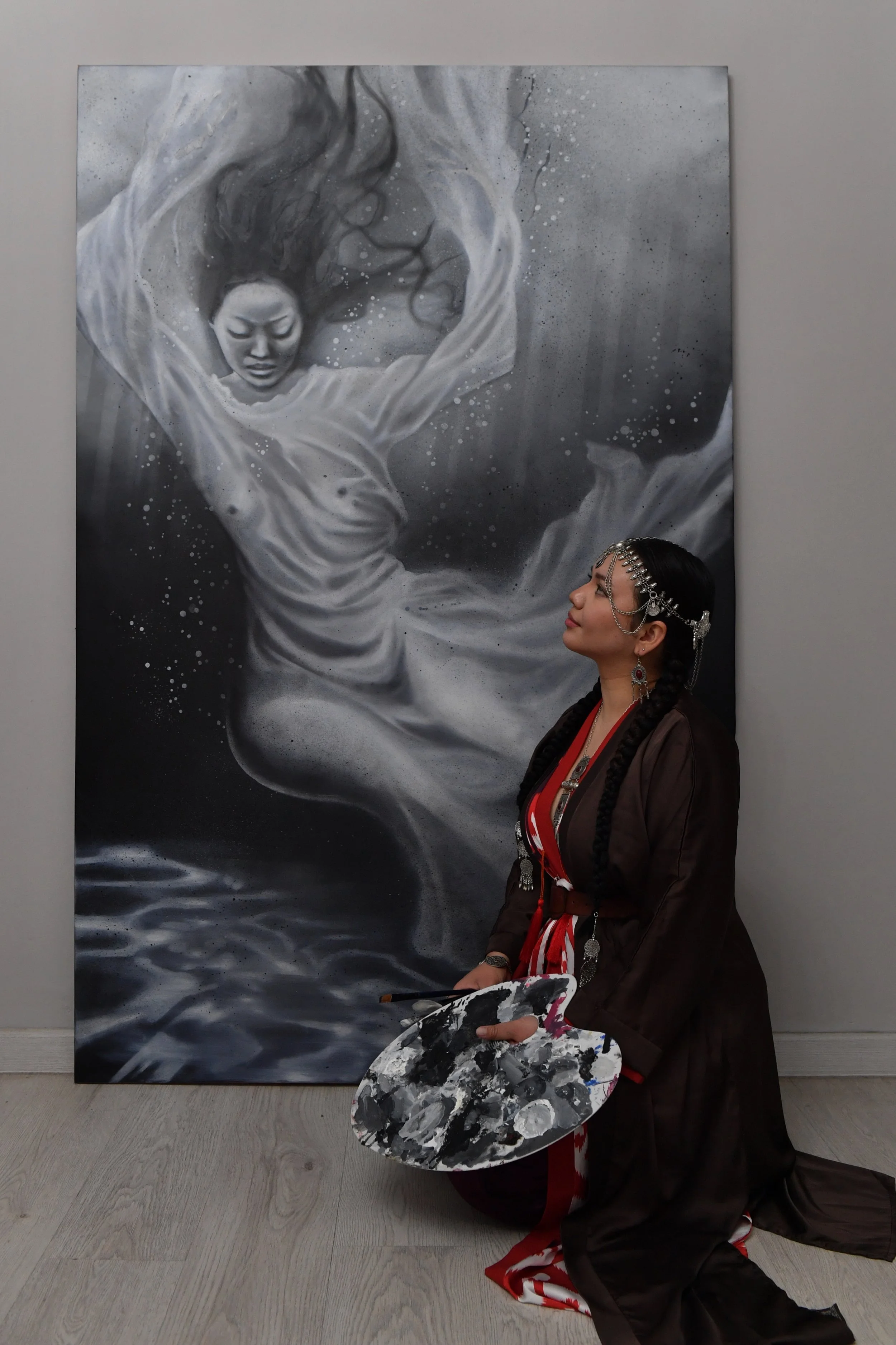 At the end of 2019, I found my first idea and the style I wanted to work in. I realized it was important for me to share my experience and worldview as a Kyrgyz woman. I wanted to convey not only traditional beauty but also touch on cultural issues that concern me.